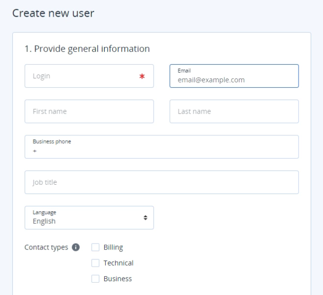 Click New > User. The Create new user dialog box opens.