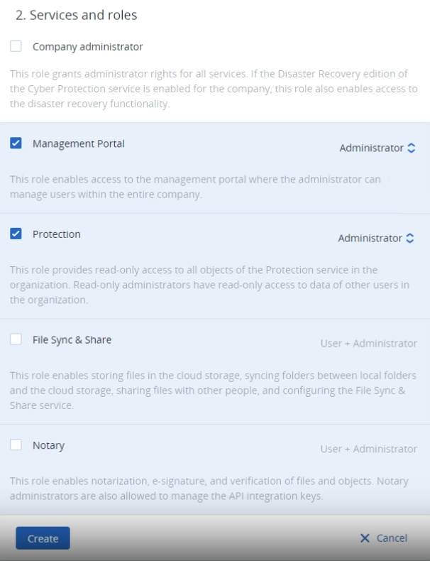 Note: These admin users will not be able to access "Acronis Email Security" using an email address and password.