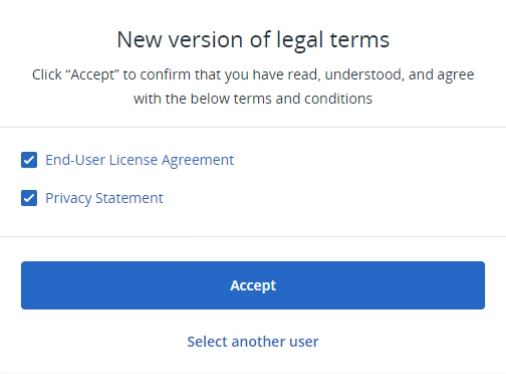 After a while, the "New version of legal terms" dialog box may appear.
