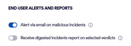 When enabled, an email alert will be sent each time an email or a file is assigned a malicious scan verdict.