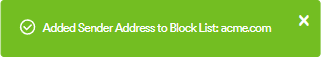 When you add an entry to a blocklist, you'll know that the entry was added successfully only if you see a "successfully added" message, similar to the following: