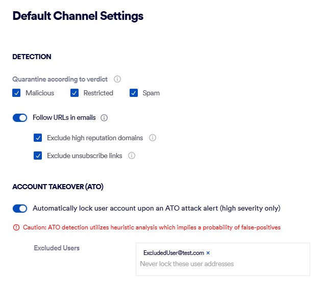 Note: Suspected ATO attempts are detected by "Acronis Email Security" only if the ATO functionality is enabled for the organization. The ATO functionality is available for Microsoft 365 installations only [Inline and API]. For details, see Configuring Microsoft 365 - ATO detection. |