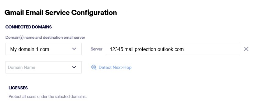 Protect selected email assets: For details on how to add a domain to an integration that is currently configured to protect only specified domains, see Editing the protected assets.