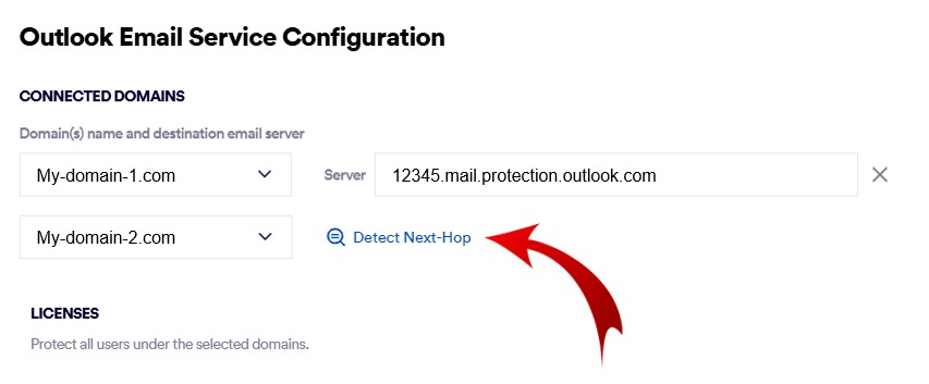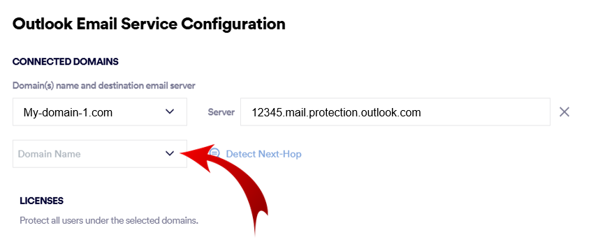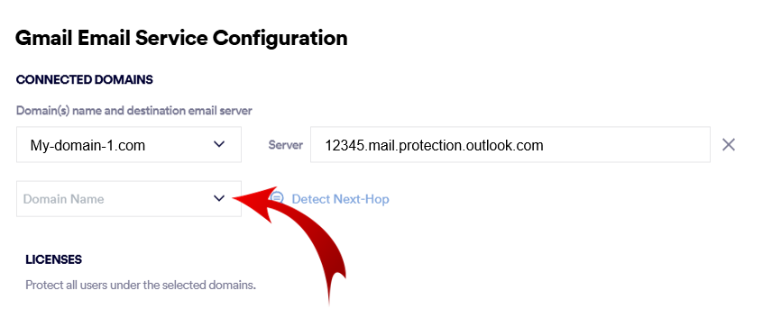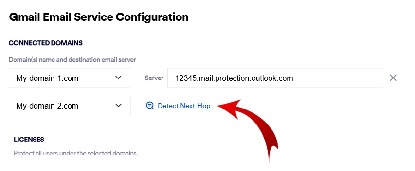 Click Detect Next-Hop to the right of the domain name. This should populate the Server or Destination Mail Server field.