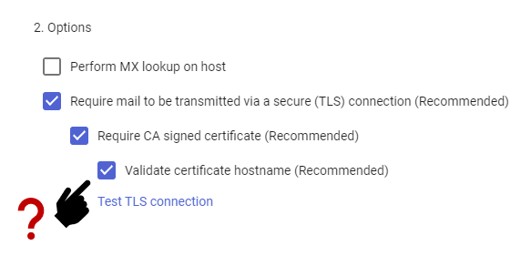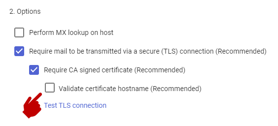 Select "Require mail to be transmitted via a secure (TLS) connection".
