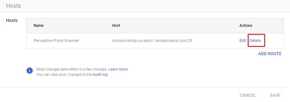 In the Hosts section, delete the Perception Point Scanner host.