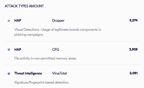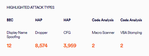 Various attack types that have been highlighted by the "Acronis Email Security" IR Team. |