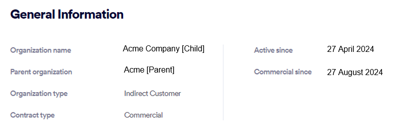 Child organization: Shows licensing information for the current [child] organization only.