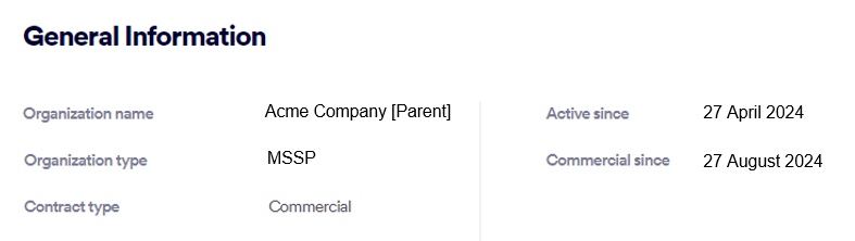 Note: This page appears only if the current organization is a parent organization with one of the following organization-types: MSSP; Reseller; Distributor; Multi-organization |