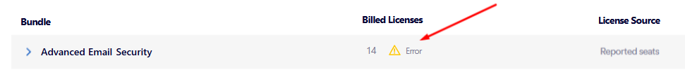 ] may appear under Billed Licenses. This is the expected behavior - and there is no error. The number of Billed Licenses will be the value that is set for Reported seats.