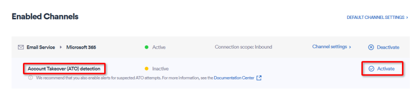 IMPORTANT: After you activate ATO detection, we recommend that you also enable alerts for suspected ATO attempts - using the "Alert via email on malicious cases" setting. For details, see Configuring alerts.