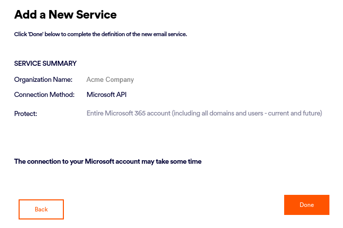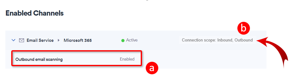You can configure "Acronis Email Security" to scan outgoing [outbound] emails to detect malicious file attachments and malicious URLs. This outbound functionality can be added to inbound Microsoft 365 [Inline and API] integrations. The outbound functionality is performed using the Microsoft 365 API connection method.