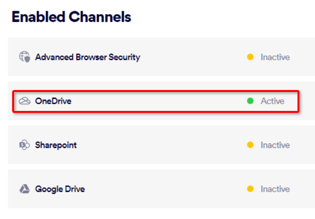 If a bundle that includes the OneDrive channel is assigned, then OneDrive will appear in the list of channels under Enabled Channels.