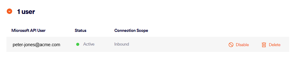 Shows all the users that were individually specified, that are currently available to be protected by "Acronis Email Security".
