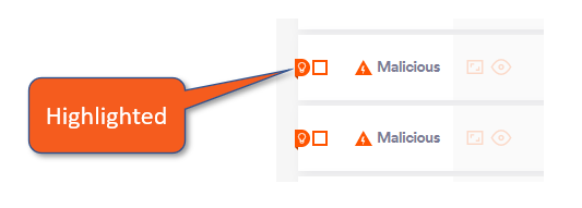 In the Scans-summary view, the Highlighted icon [light-bulb] appears on the left of the scan entry - to indicate that the scan has been highlighted.