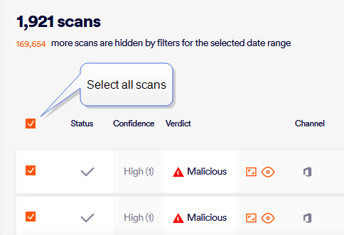 Note: Some bulk-action options may not be available if any of the selected scans are for emails that are: