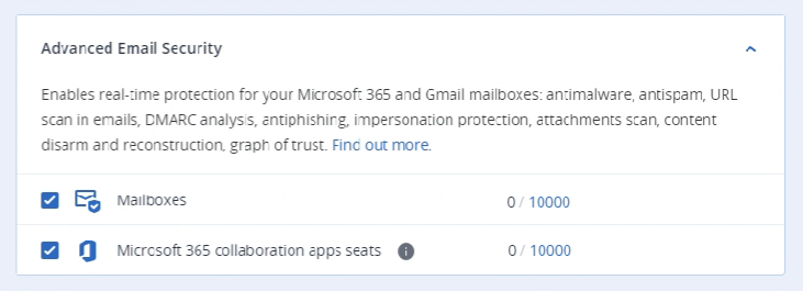 Note: If the "Microsoft 365 collaboration apps seats" option doesn't appear, contact your Acronis account manager.