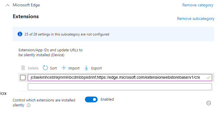 kpehlcnleoaejbmmgncofcgpjnojlfbn;https://clients2.google.com/service/update2/crx Note: If you are not able to enter the above string (for example, it breaks after the semicolon), you may need to use the import function to import a file that contains the string.