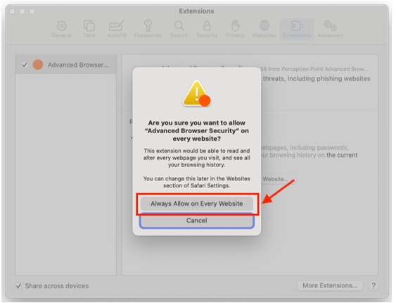 Manual deployment - using a store link [Safari] End-users can manually add the extension to Safari browsers. This simplified user onboarding mechanism is typically useful in smaller organizations and PoC evaluations.