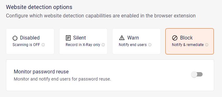 Block extensions with suspicious verdicts [This option appears only if the Block extension detection mode is selected above] |