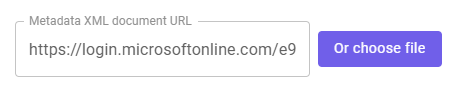 In this step, you'll copy configuration details from your identity provider to the FortiMail Browser Security console. The configuration details are typically contained in a metadata .xml file. A metadata .xml file is created by your identity provider when you add the new SAML integration. This file contains information about the IdP that enables FortiMail Browser Security to accept SAML assertions from the IdP. The metadata .xml file can be stored either locally in the FortiMail Browser Security console, or at a specified URL [which is the recommended option for non-on-premise IdPs].