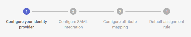 If no identity provider has been configured, click Configure identity provider. The first step of the wizard opens.