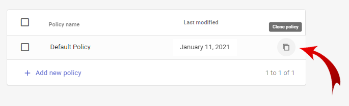 Admin users can clone a policy, and then modify the new policy as required. The new policy will have the same configuration as the policy that was cloned.