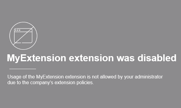 A block-page is displayed in a new browser tab, explaining to the end-user that the extension was not enabled - due to the organization's browser extension policies.