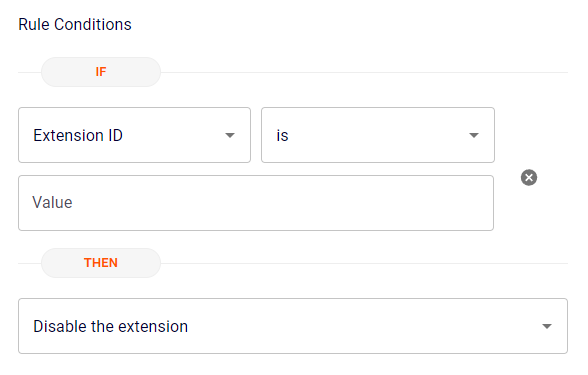 Use the available controls to define the condition - or the conditions - for the new rule. Each condition can be based on either Extension ID, Risk Level, Permissions, or Extension Store.