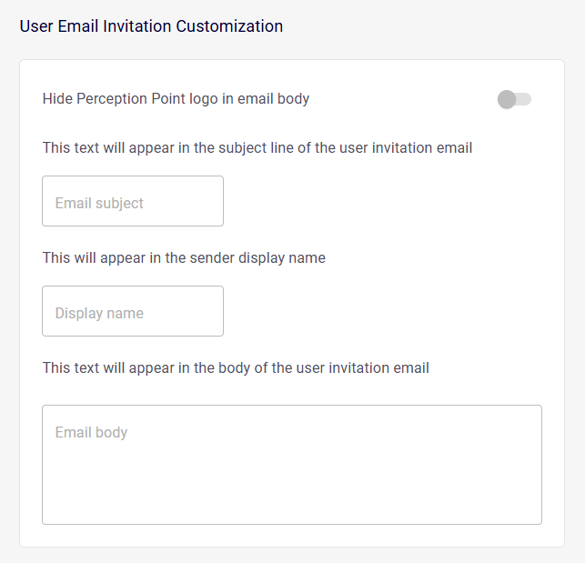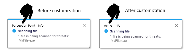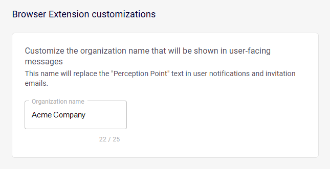 Enter your organization's name. This name will replace the default "Perception Point" in online user notifications [toast messages].