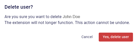Click Actions > Delete user or Delete x users. The "Delete users" dialog box appears.
