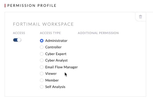 Note: To be able to access FortiMail Browser Security, an admin user must be assigned the Administrator admin role. |