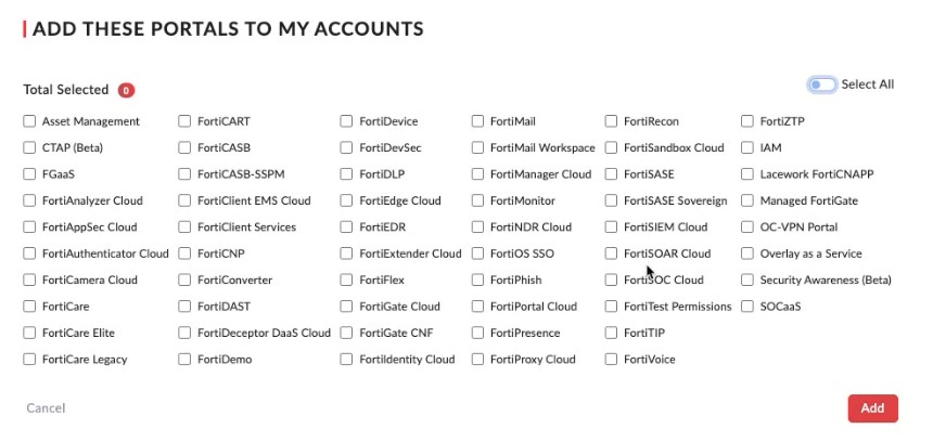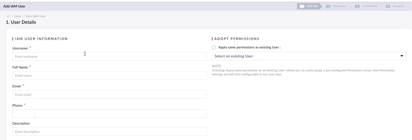 Admin users can access FortiMail Workspace Security via FortiCloud only if they are registered with FortiCloud. When you add a new admin user to FortiCloud, it is recommended that you add "IAM" [Identity Account Management] type users. Before you add new admin users, you'll need to create permission profiles for your organization. For details, see Adding permission profiles in FortiCloud below.