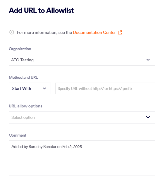 • Starts with: A URL will be allow-listed if the URL starts with the specified URL string.