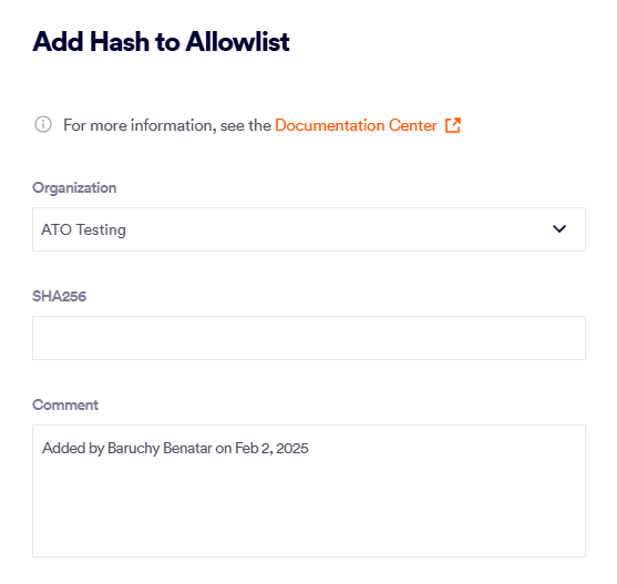 When a file should possibly be scanned, if the hash of the file is included in the "hash allowlist," then the file won't be scanned, and the scan verdict will be set to clean.