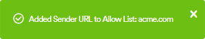 Note: If you don't see a "successfully added" user notification, and if the entry that you tried to add doesn't appear in your allowlist, this may indicate that the entry is included in the globally maintained allowlist. For details, see Global allowlists above.