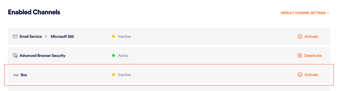 Under Enabled Channels, locate "Box" and then click "Activate".