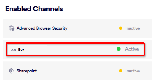 If a bundle that includes the Box channel is assigned, then Box will appear in the list of channels under Enabled Channels.