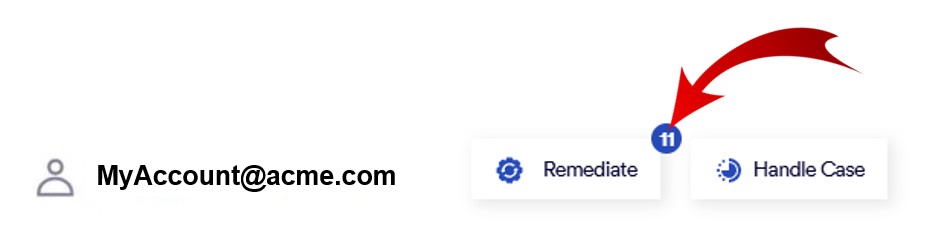 The badge on top of the Remediate button indicates the total number of remediation actions that are suggested for the case.