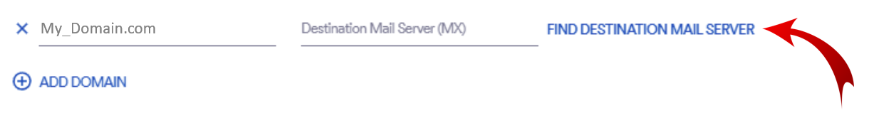 Click FIND DESTINATION SERVER to the right of the Destination Mail Server (MX) field.