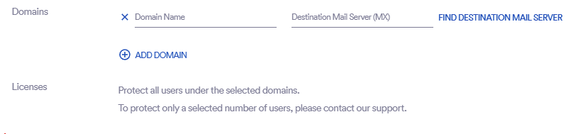 Licenses: By default, FortiMail Workspace Security will protect all email users in the domains that you specified above. To protect only a limited number of users, contact FortiMail Workspace Security Support.