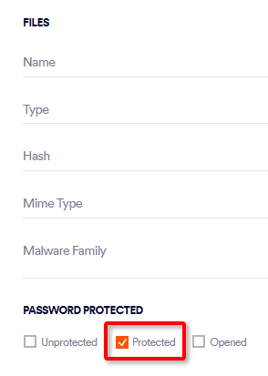 Scroll down the list of filter options, and then under Files > Password Protected, select Protected.