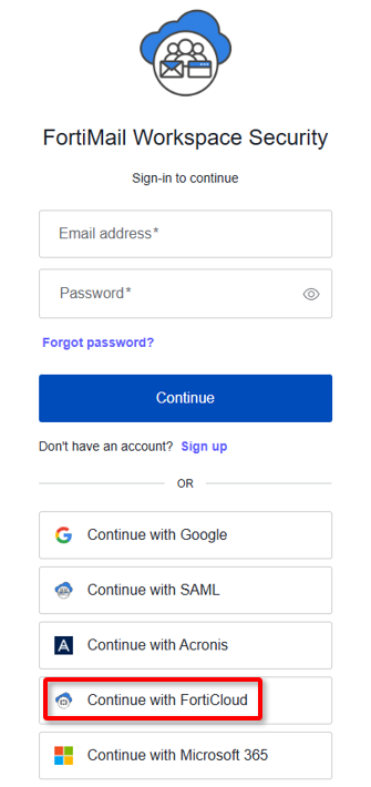 Click Continue with FortiCloud.