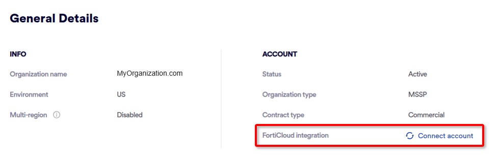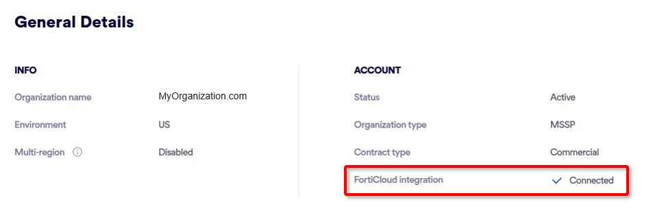 Under "General Details", "FortiCloud integration" will now be "Connected".
