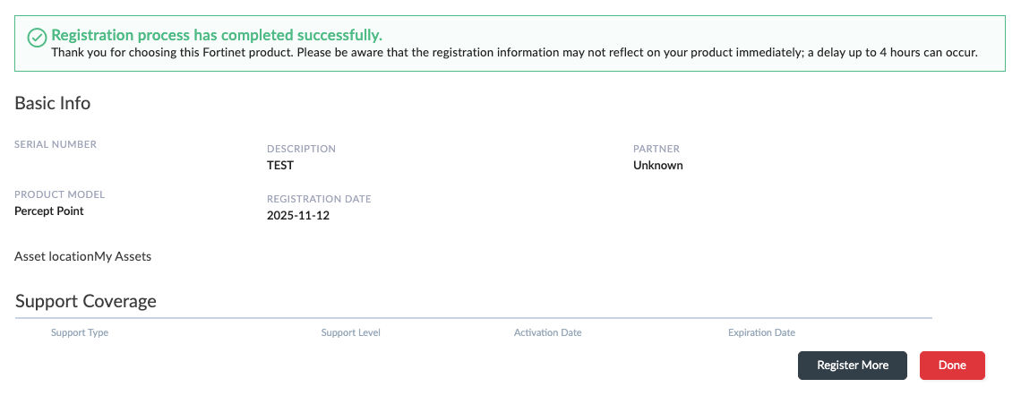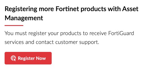 In the "Registering more Fortinet products with Asset Management" box, click "Register Now".