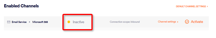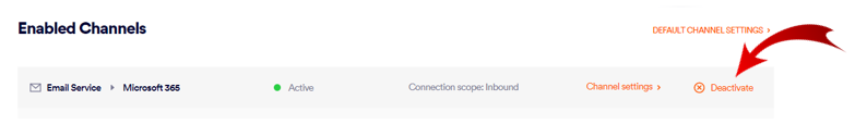 Under Enabled Channels, locate Email Service > Microsoft 365, and then click Deactivate on the right.