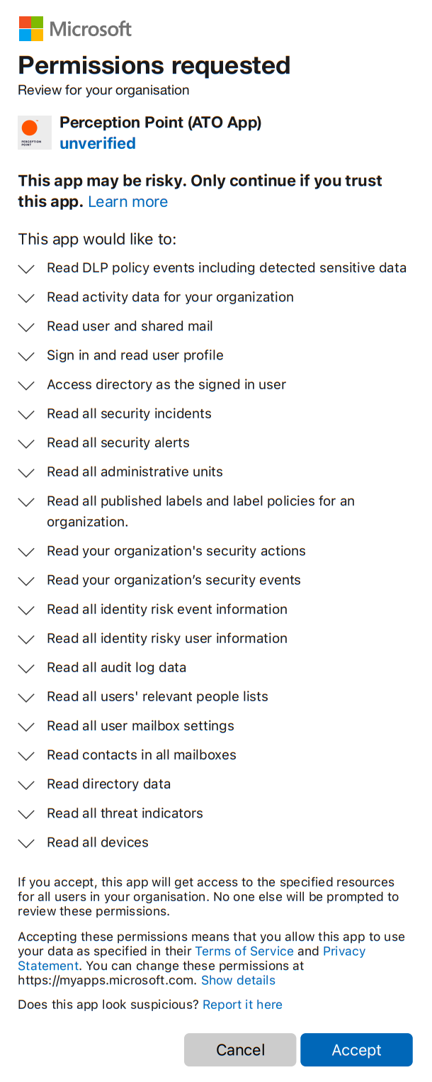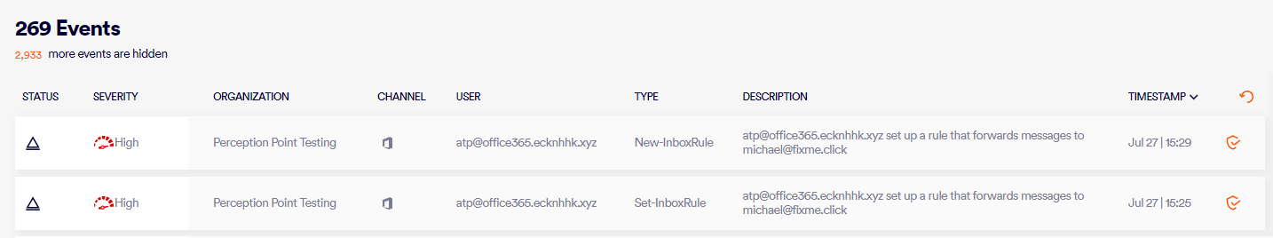If you don't see any ATO-related events after 24 hours, contact FortiMail Workspace Security Support [support@perception-point.io] for assistance.
