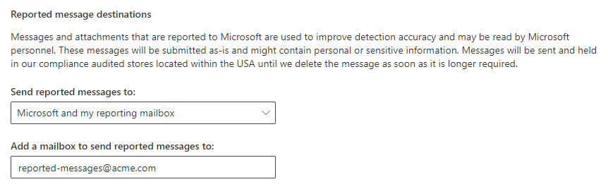 Open a dedicated mailbox on your Microsoft 365 server - all reported messages will be sent to this mailbox. For example, you could create the following mailbox: