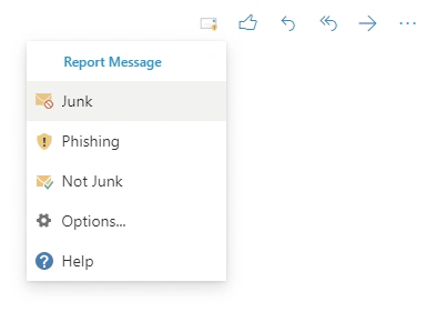 Click Report Message, and then select Junk, Phishing, or Not Junk.