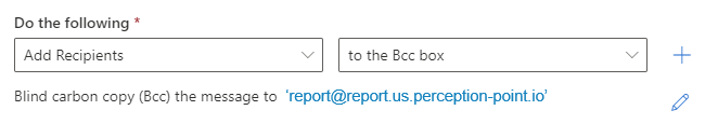 Apply this rule if > The recipient > is this person, and then enter your new dedicated mailbox - that you opened in Step 1 above: for example, reported-messages@acme.com